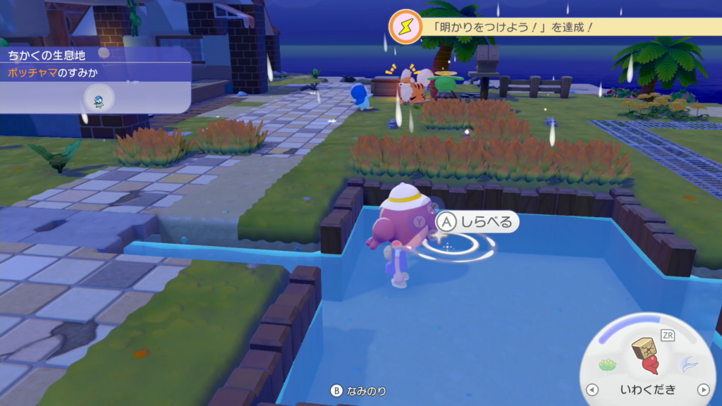 ラッキーデーは水面のキラキラやキラキラした地面が増えるので、レシピを効率よく集めることができます。