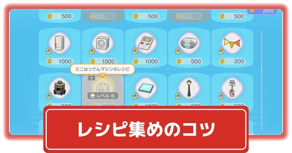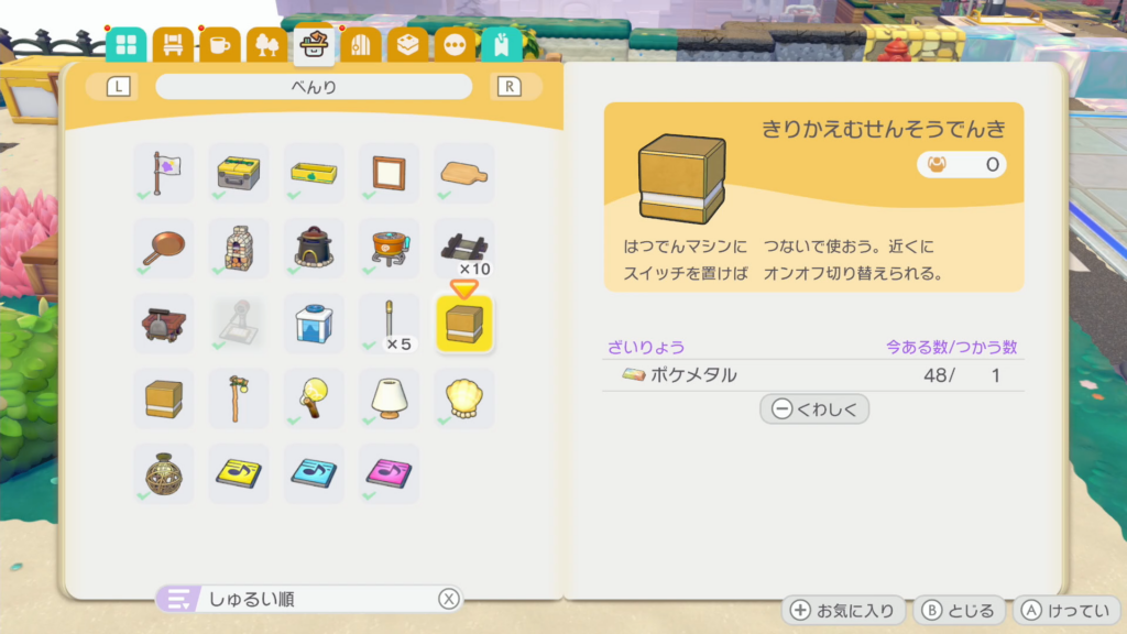 スイッチはパサパサこうやの街の環境レベル6以上、カベつきスイッチはドンヨリうみべの街の環境レベル6以上でレシピを購入可能になります。
