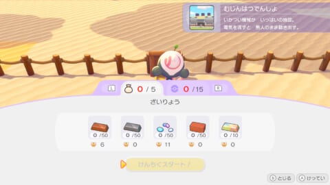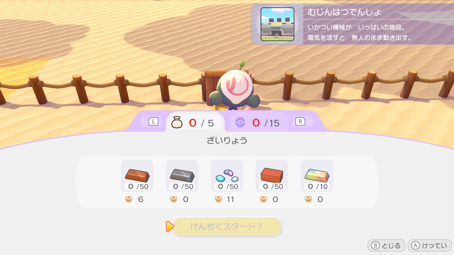 サンダーの出現場所である「むじんはつでんしょ」を作るために、まずは「むじんはつでんしょ」の建築キットを手に入れます。