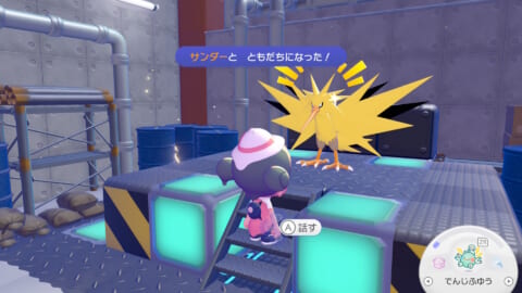 ぽこあポケモンのサンダーは、「むじんはつでんしょ」の中に出現するので、建物の奥にいるサンダーに話しかけて仲間にしましょう。