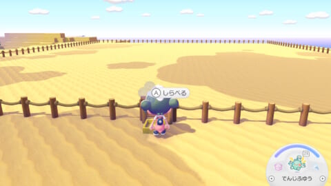 キットがあった場所から西ある砂地は地面が砂なので「ころがる」で簡単に整地ができます。土地を増やしたい時は「でんじふゆう」を使うのがおすすめです。