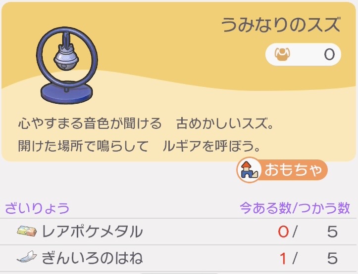 うみなりのスズはルギアを友達にする(図鑑登録する)ために必要なアイテムなので、忘れずに全ての伝説の三鳥を仲間にしましょう。
