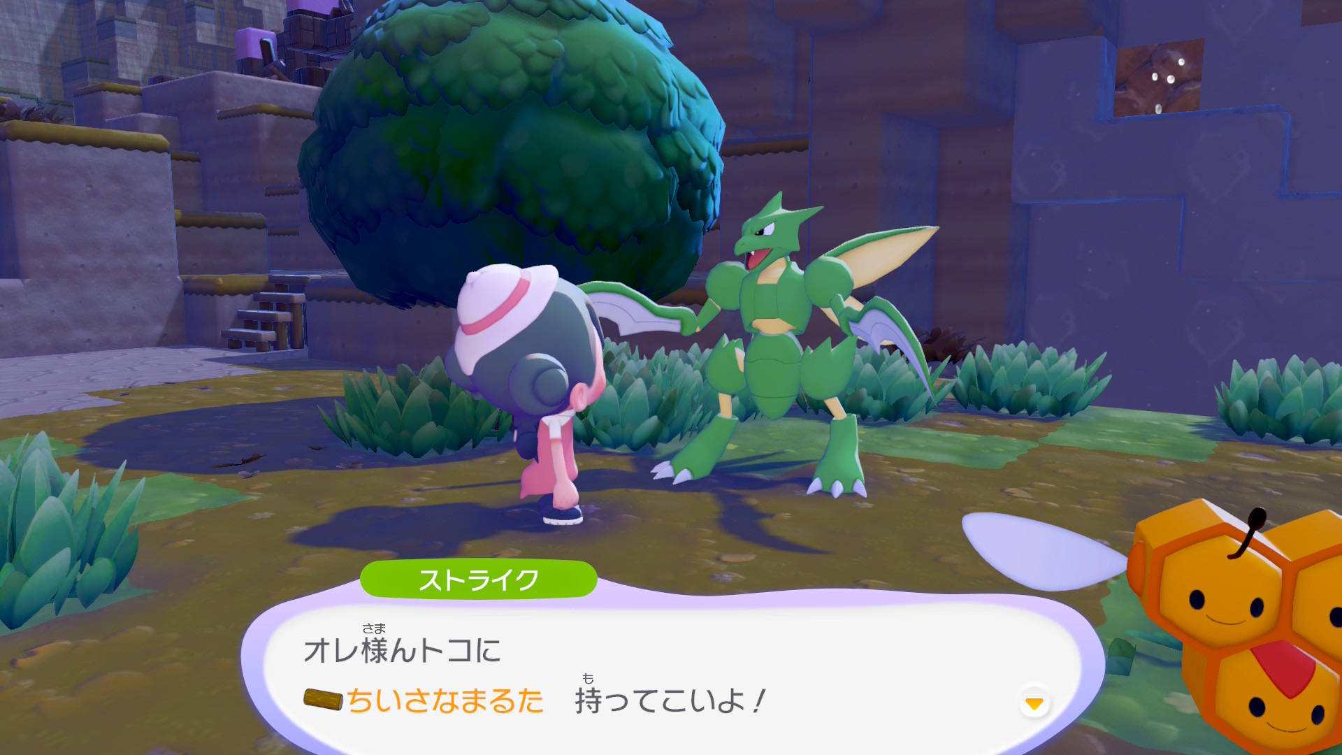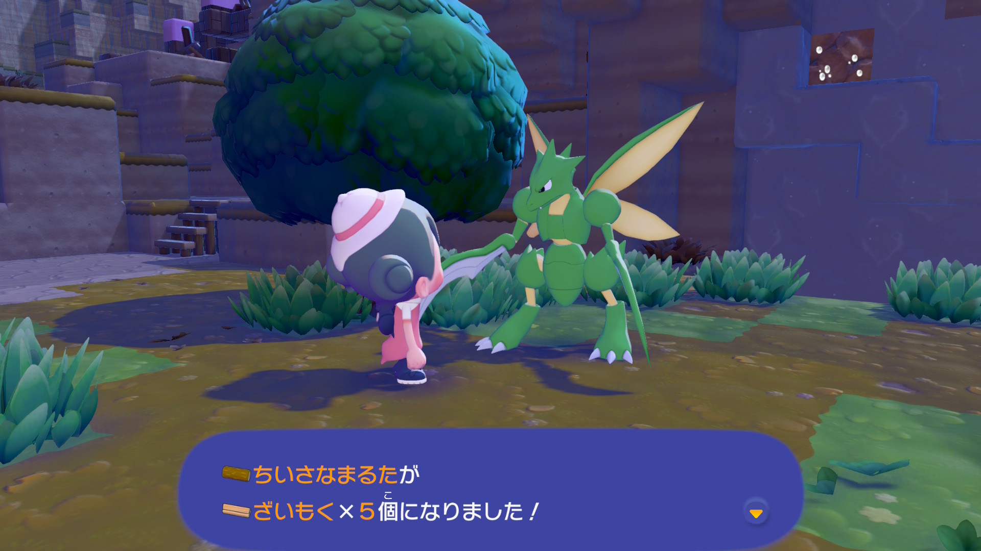 ストライクのように「きをきる」が得意なポケモンに「ちいさなまるた」を渡すと「ざいもく」に加工してくれます。ざいもくを作るのに時間がかかりますので、なるべく小まめに加工を依頼するようにしましょう。