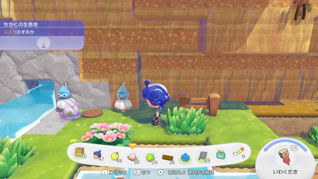 生息地「あまごいスポット」を作成したら、得意なことが「うるおす」のポケモンを「あまごいスポット」の元へ連れてきましょう。