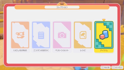 様々なアイテムを初めて入手すると「アイテム」に登録されます。
