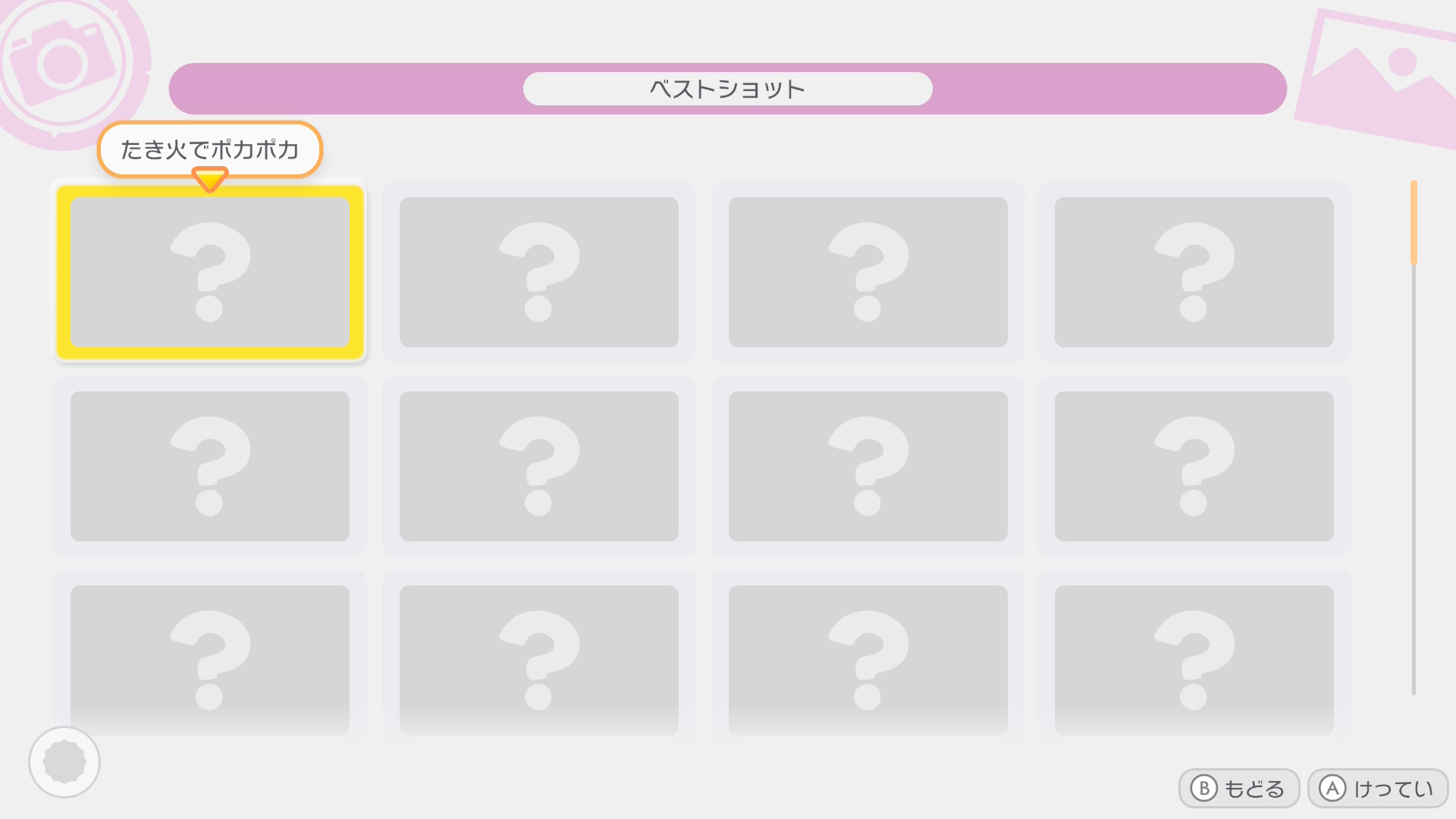 特定の条件を満たした状態で写真を撮ると「ベストショット」に登録されます。シャッターチャンスが訪れたらカメラで写真を撮りましょう。