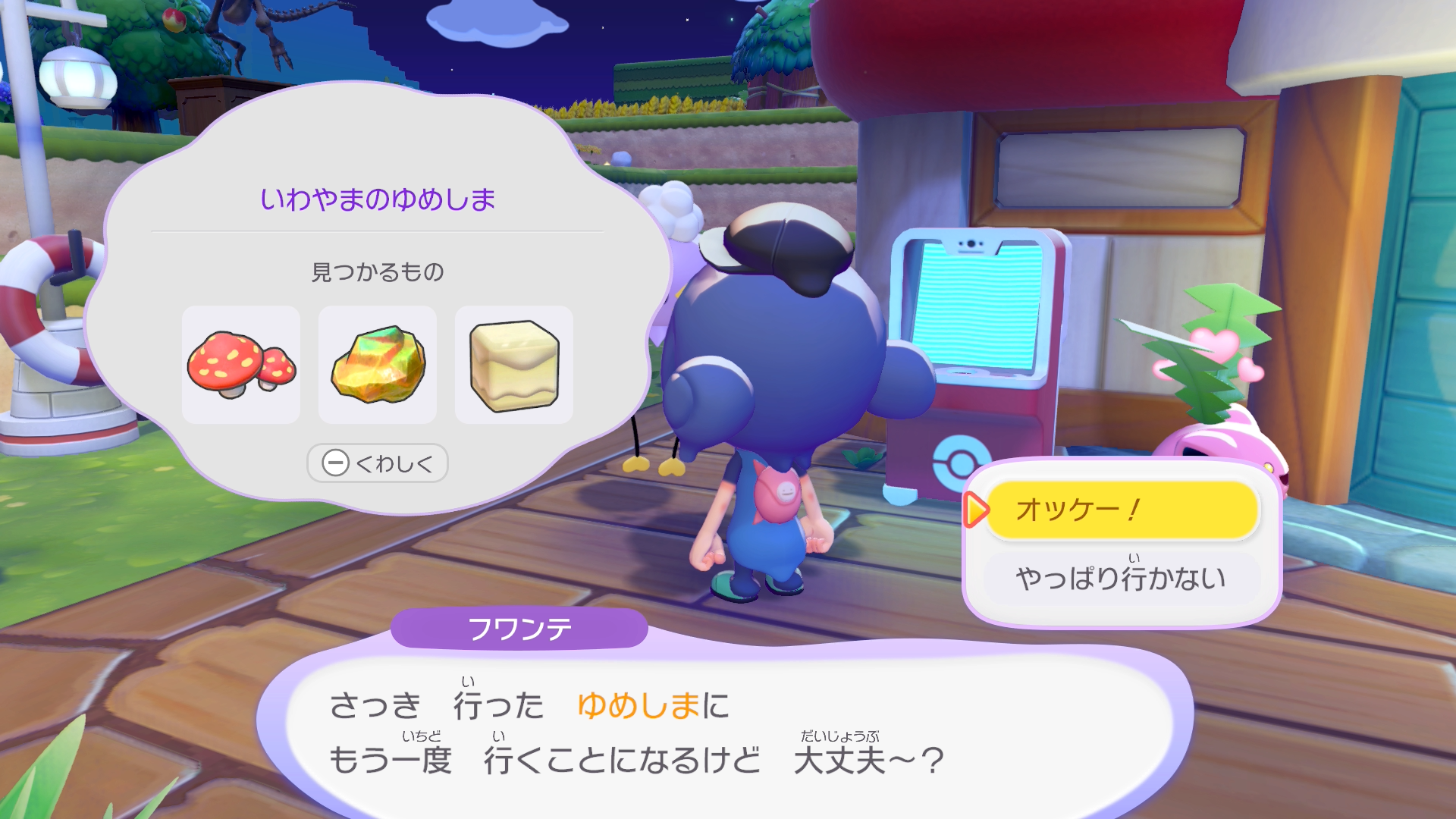 ゆめしまへは、ポケモンのぬいぐるみからフワンテを呼びだして連れて行ってもらいましょう。