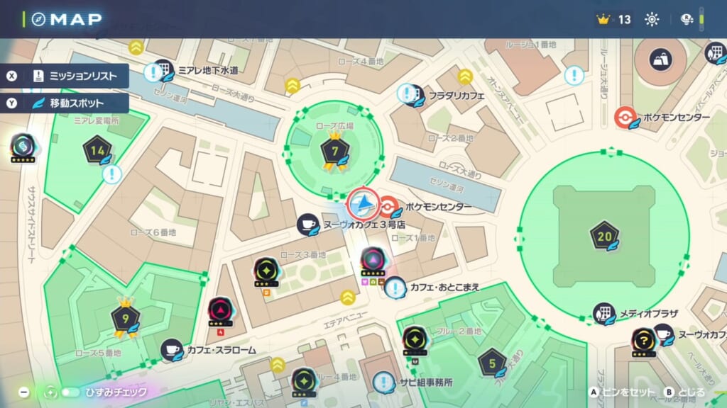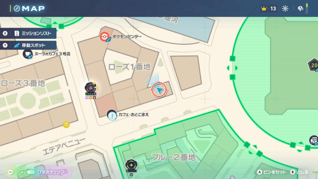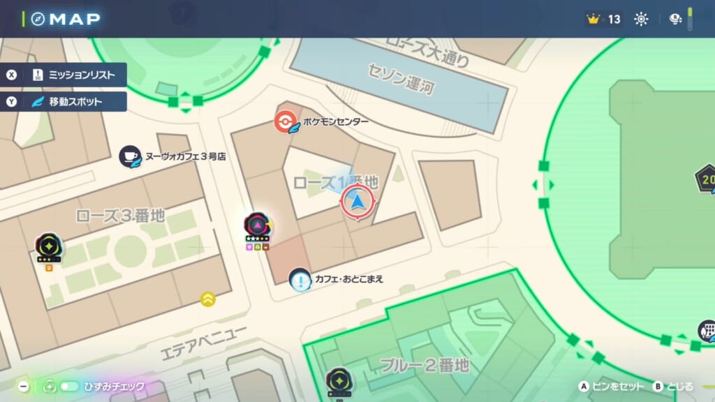 ポケモンセンター:ローズの西側にいるサスワールに話しかけてサイドミッションを受注します。