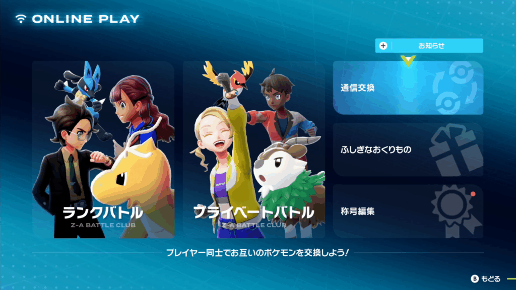 通信交換には、近くにいるプレイヤーと直接繋がるローカル通信と、インターネットを介して遠く離れたプレイヤーと交換するインターネット通信の2種類があります。