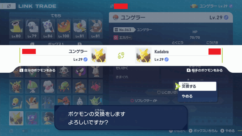 プレイヤー同士のマッチングに成功すると、ポケモン交換画面に移行します。
