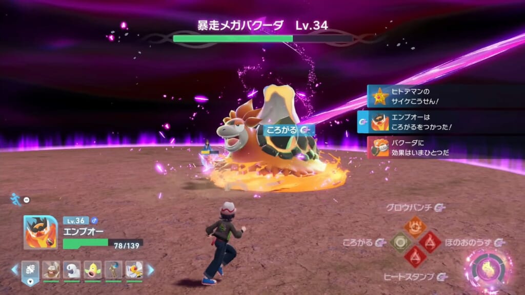 ポケモンに指示を出しているタイミングと噛み合った場合など、どうしても避けづらい状況下ではYボタンのローリングを出して回避してください。