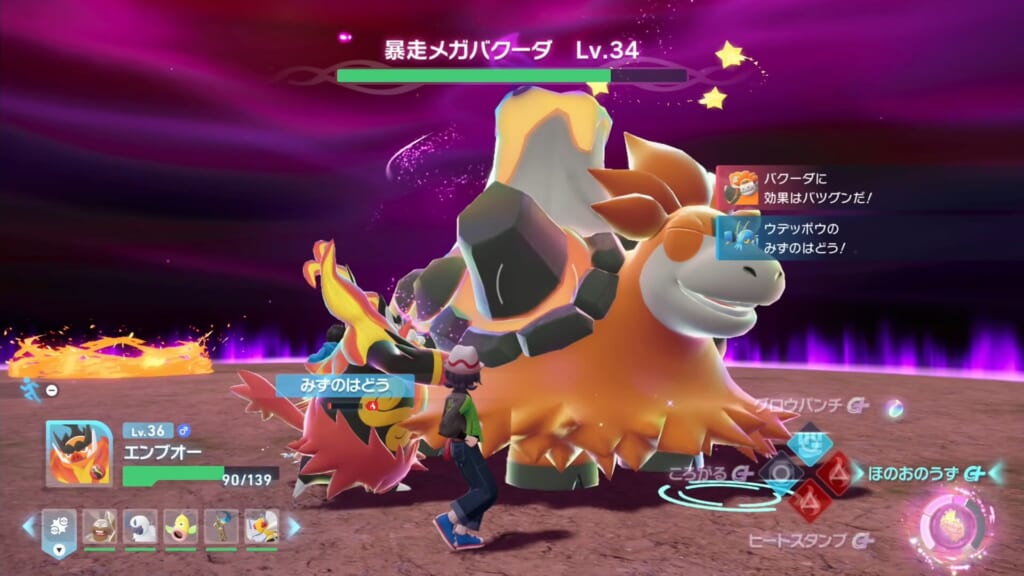 みずタイプポケモンがいない場合でも、なんらかのみず技を持ったポケモンを使うことで大ダメージが狙えます。