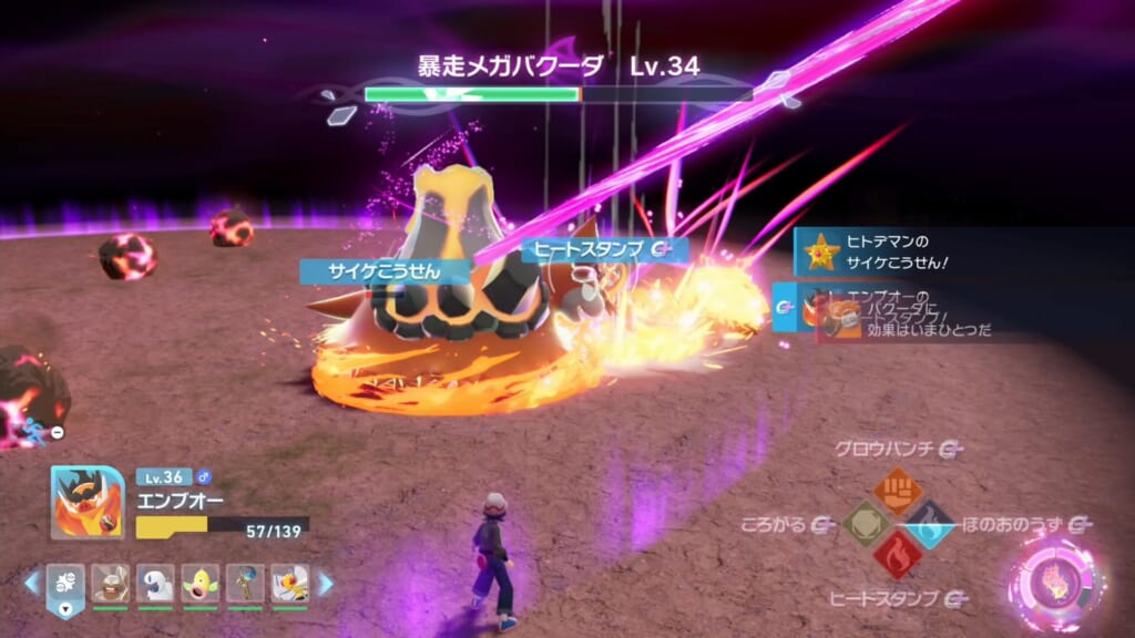 だいちのちからは、主人公やポケモンの足元からエネルギーを噴出させる攻撃です。