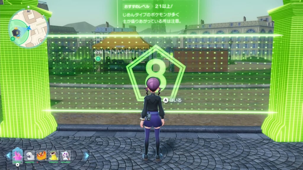 全ての穴を確認してフカマルが出現しなかった場合、再びワイルドゾーン8番にファストトラベルで移動することで野生ポケモンが再抽選されます。