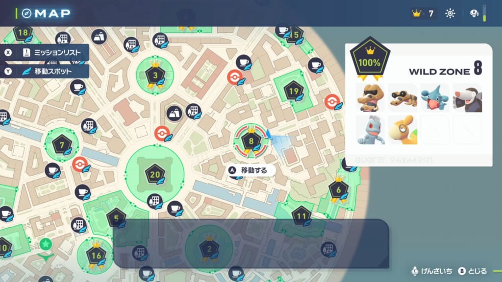 オヤブンや色違いのフカマルがいなかった場合は、マップを開いてワイルドゾーン8番にファストトラベルし 再び狙いの個体を探します。