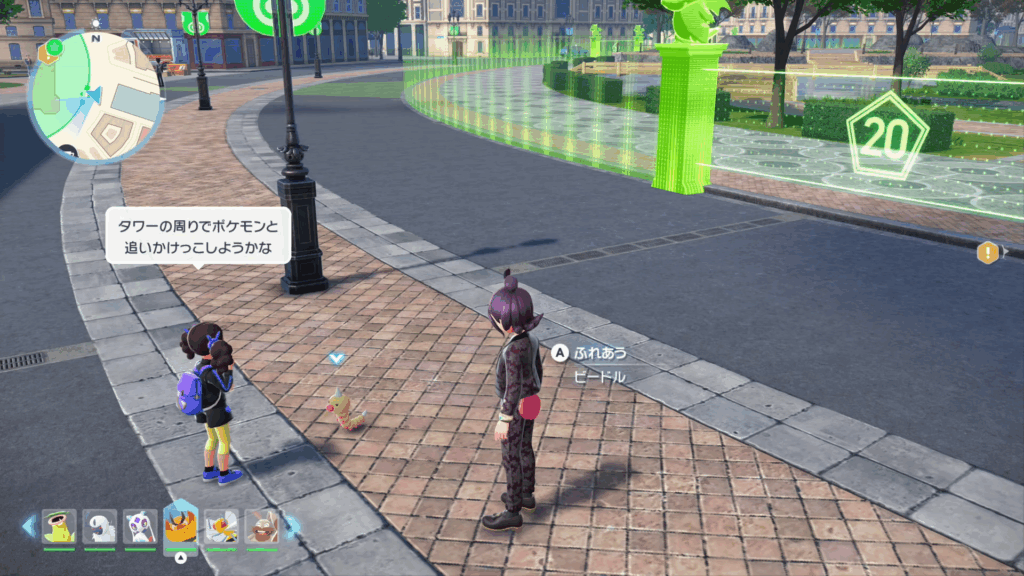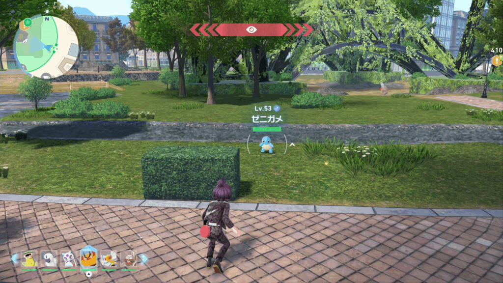 街にいるトレーナーが連れているポケモンは捕獲や攻撃の対象ではないためロックオンできません。