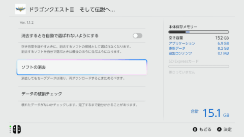 プレイ予定のハードの空き容量を事前に確認しておきましょう。