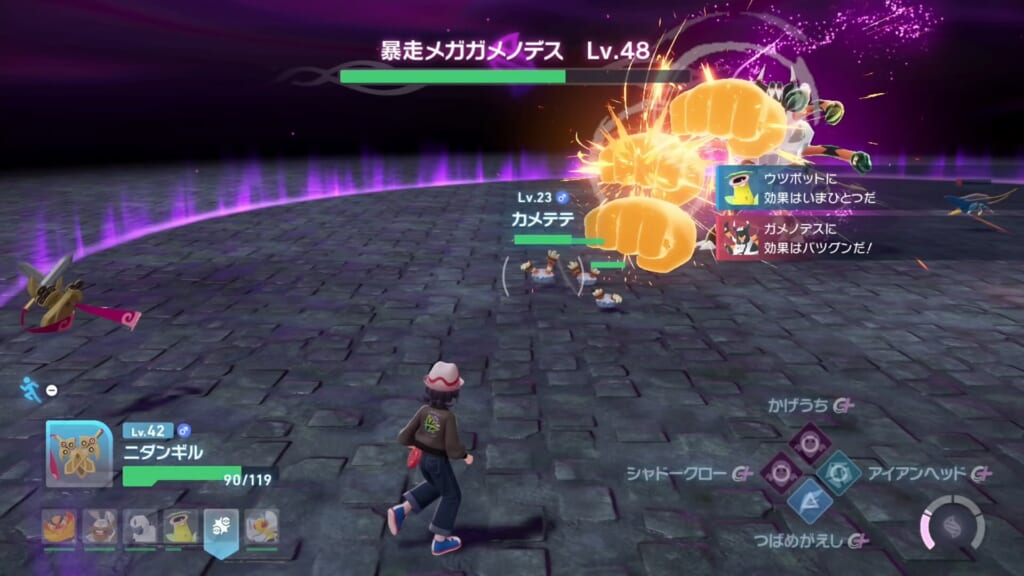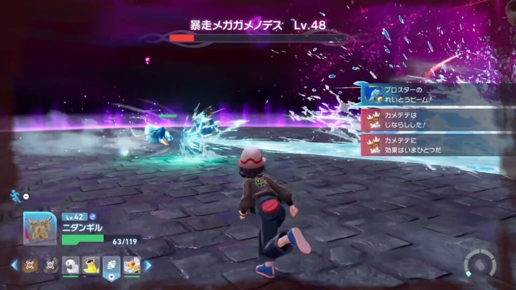 カメテテのレベルは20前後とさほど強くはありませんが、放置しておくとダメージがかさむ上に囲まれると進路を妨害されることもあり、残しておくと非常に危険なので広範囲に攻撃できる技で一気に処理してしまいましょう。