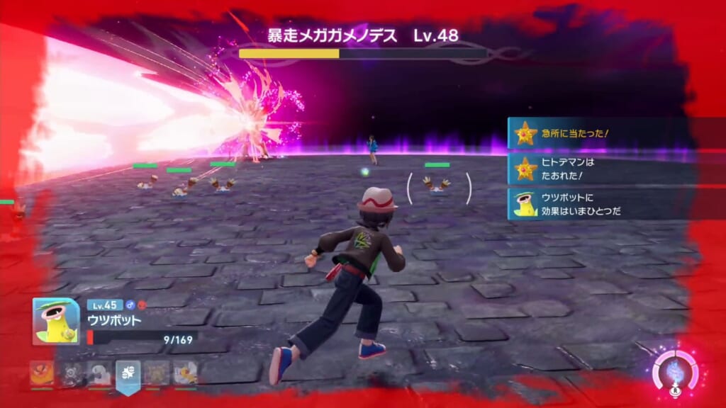 ポケモンに当たってしまうとひるみ状態になり、しばらく攻撃できなくなることがあります。