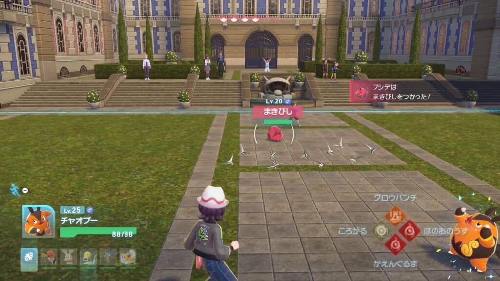 フシデ・ロゼリアが展開する まきびし を踏んでしまったポケモンはダメージを受けます。