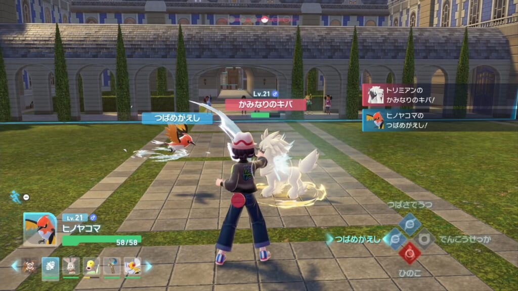 つばめがえし などのひこう技でフシデ・ロゼリアの弱点を突くことができ、トリミアンに対してはつっぱりなどのかくとう技で大ダメージが狙えます。