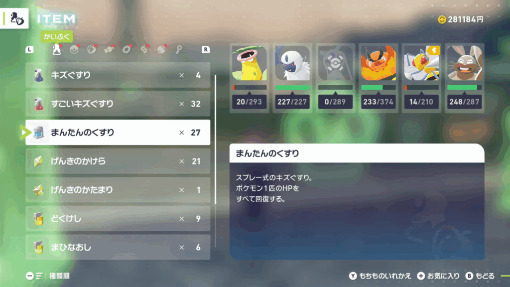 一部のメガシンカポケモンは状態異常を使うこともあるため、 やけどなおし や なんでもなおし なども準備しておきましょう。