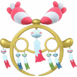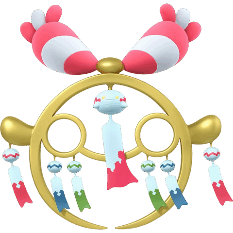 メガシンカすると本体のチリーンのまわりに、6匹の分身チリーンがぶら下がる姿に変化します。