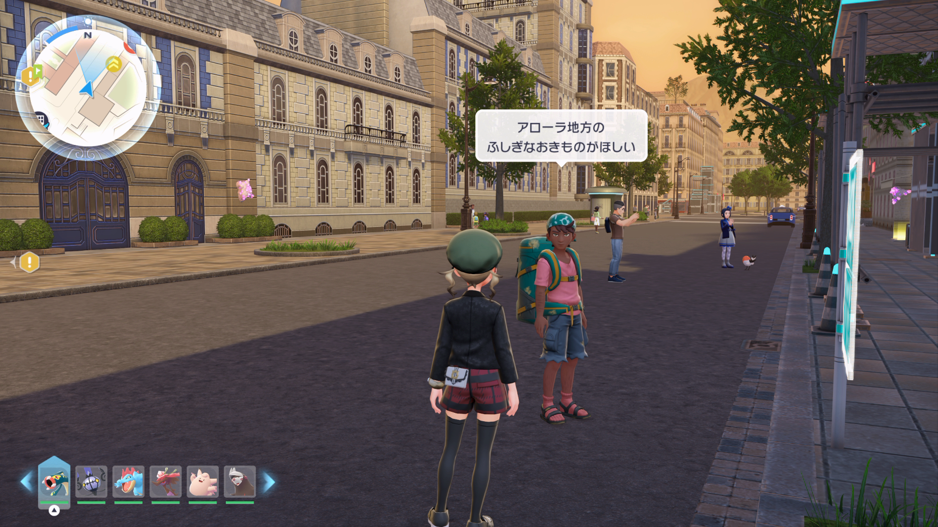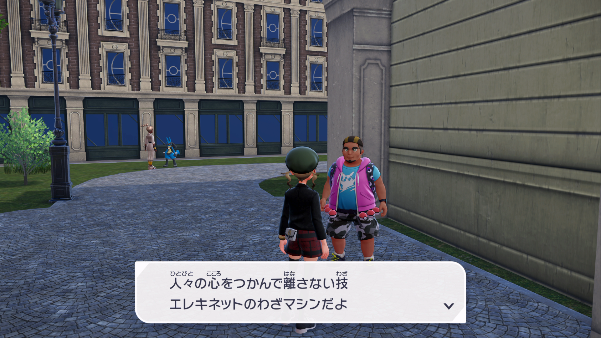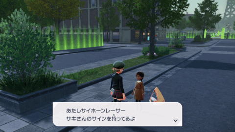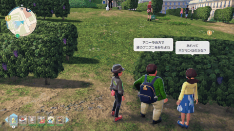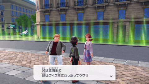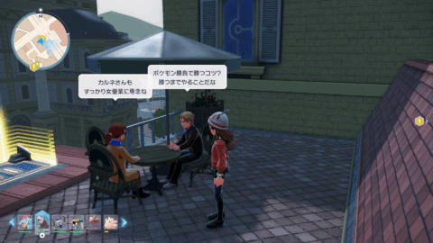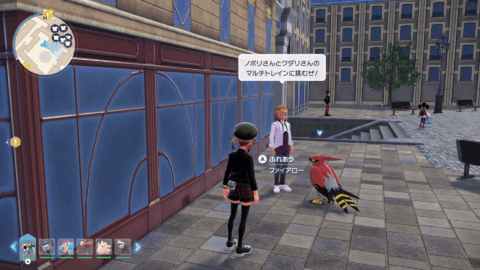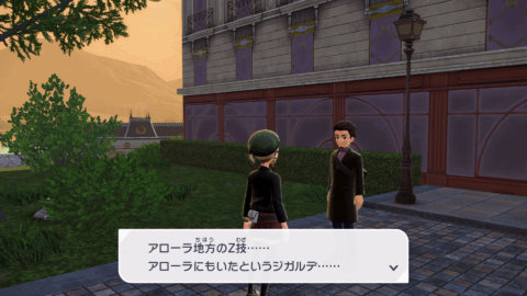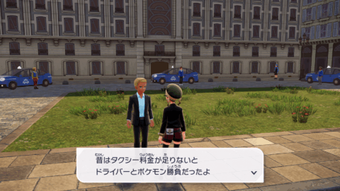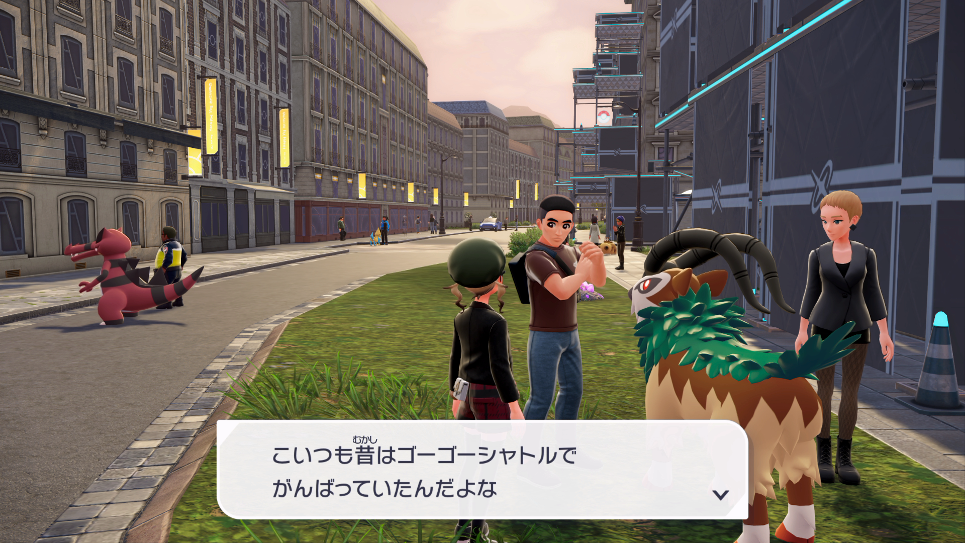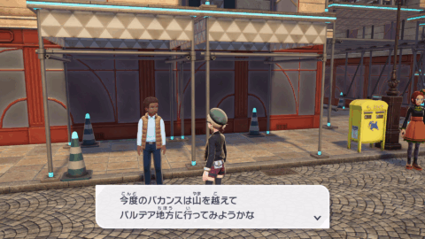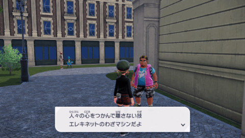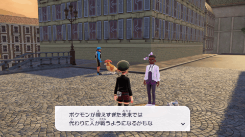 『XY』本編では、公共交通機関としてゴーゴートを利用する「ゴーゴーシャトル」が存在しましたが、『ZA』ではもう存在しないようです。ちなみに、隣の女性からは、「ゴーゴートは5000年前から人の仕事を手伝ってきたそう」と話しており、これは『スカーレット』のポケモン図鑑説明にそのような記述があります。