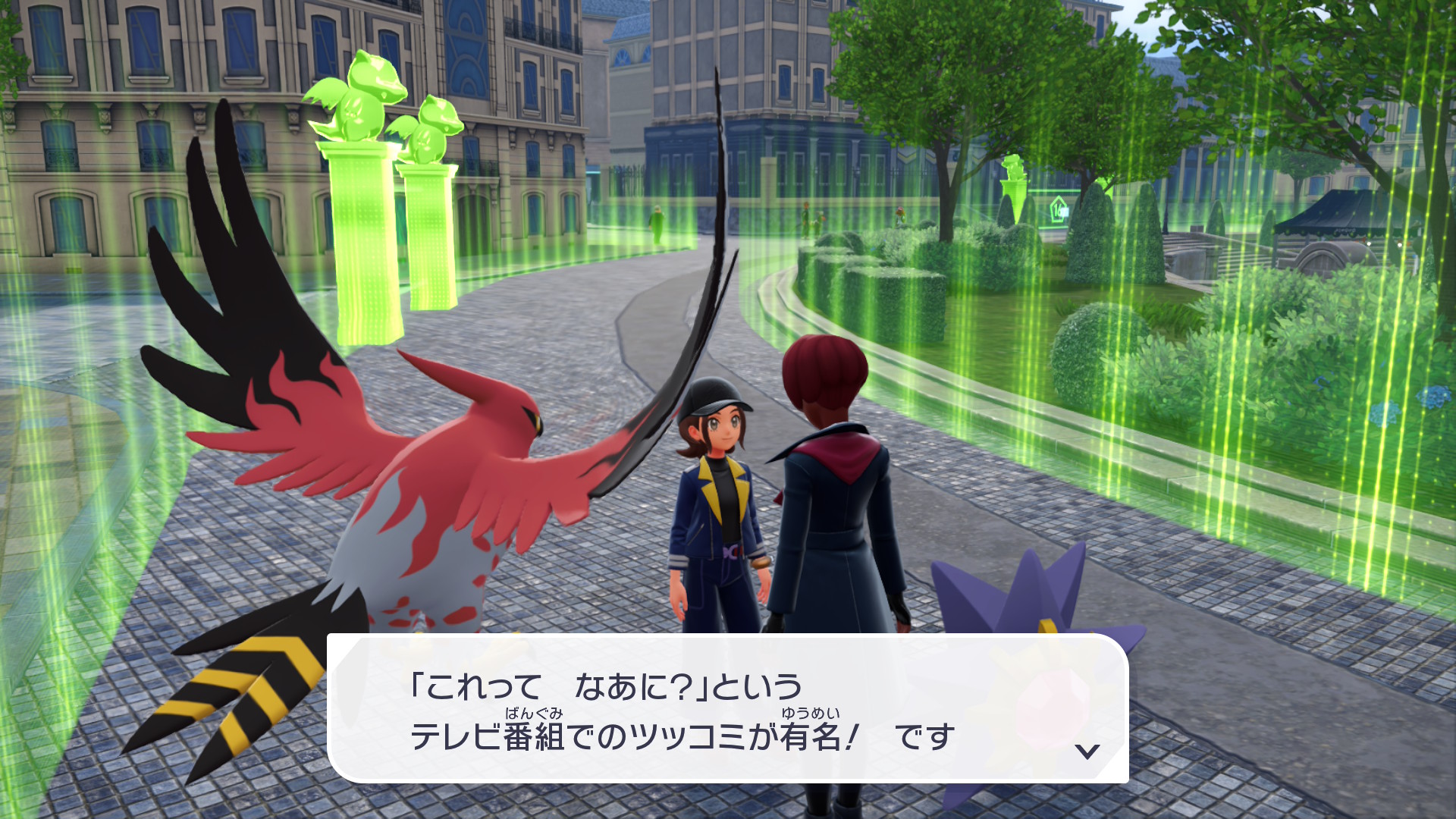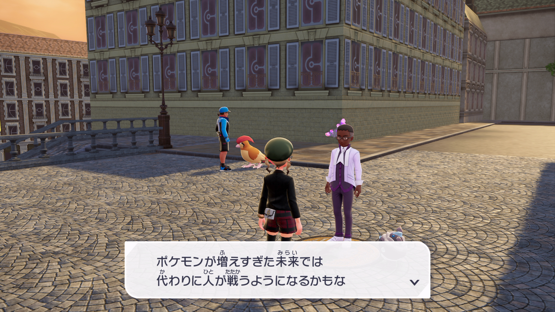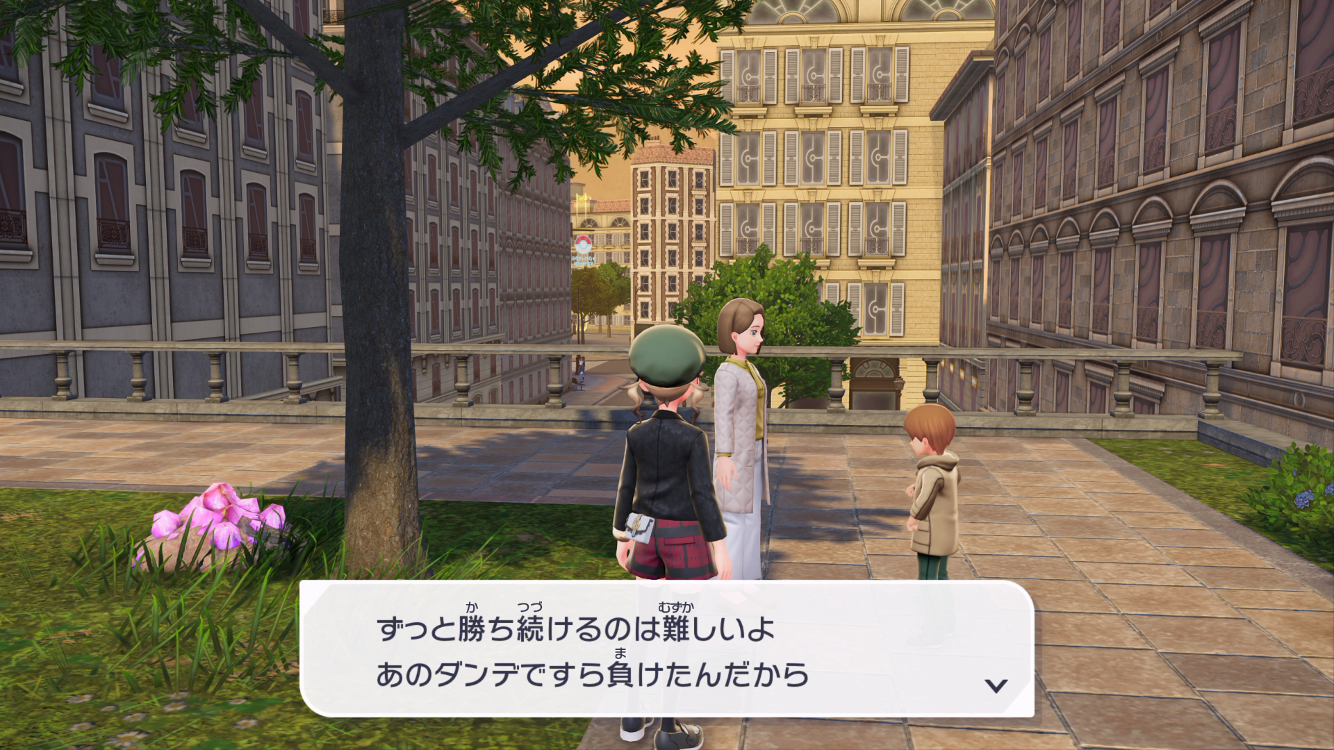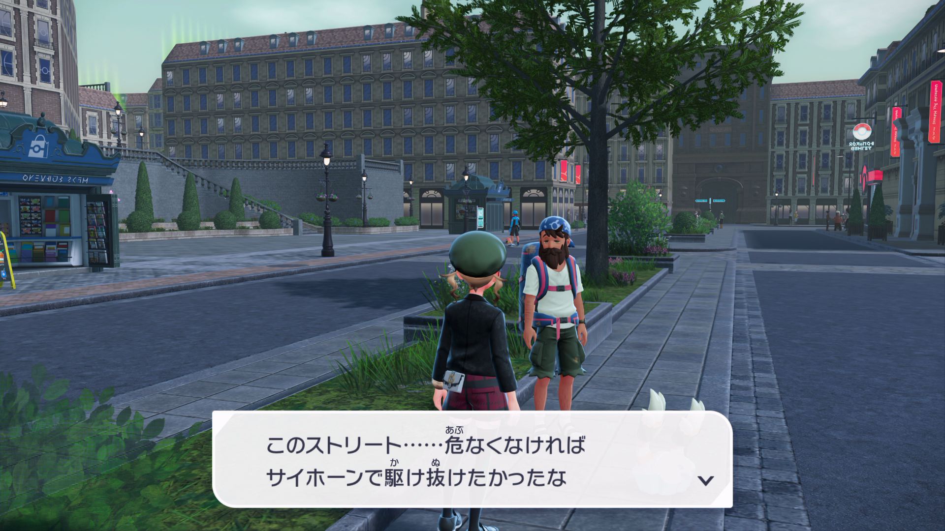 『XY』本編では、公共交通機関としてゴーゴートを利用する「ゴーゴーシャトル」が存在しましたが、『ZA』ではもう存在しないようです。ちなみに、隣の女性からは、「ゴーゴートは5000年前から人の仕事を手伝ってきたそう」と話しており、これは『スカーレット』のポケモン図鑑説明にそのような記述があります。