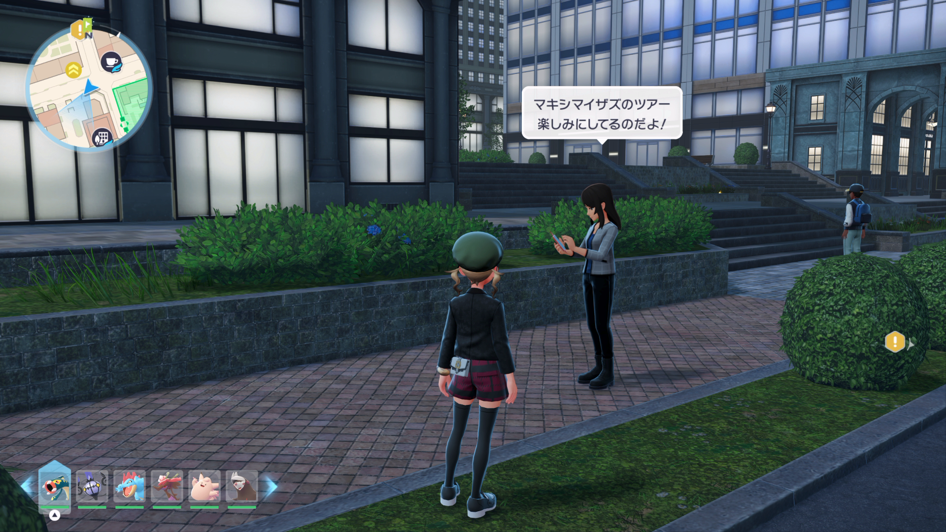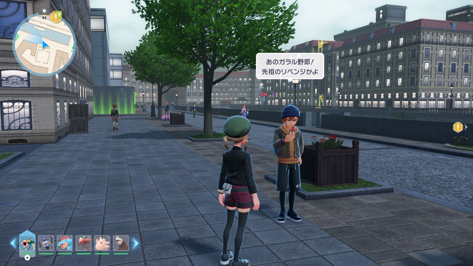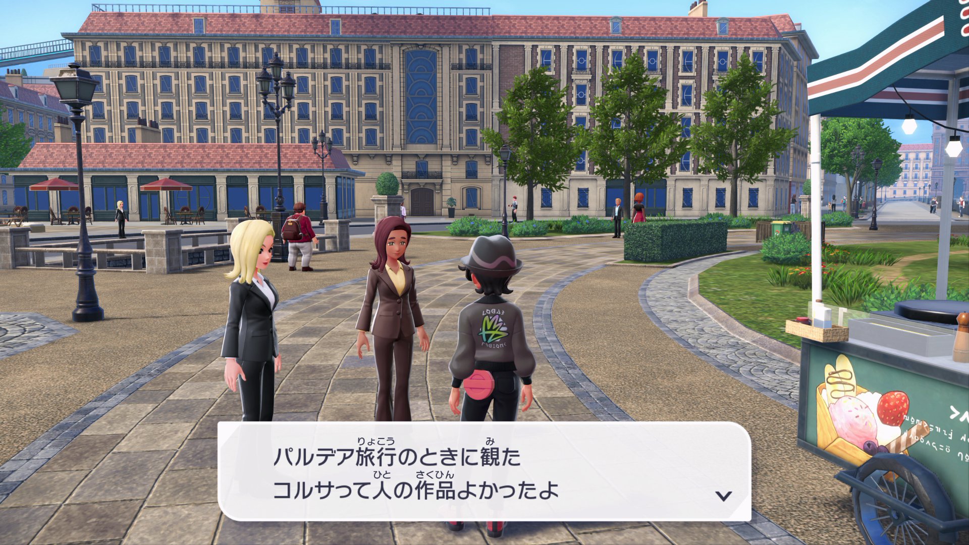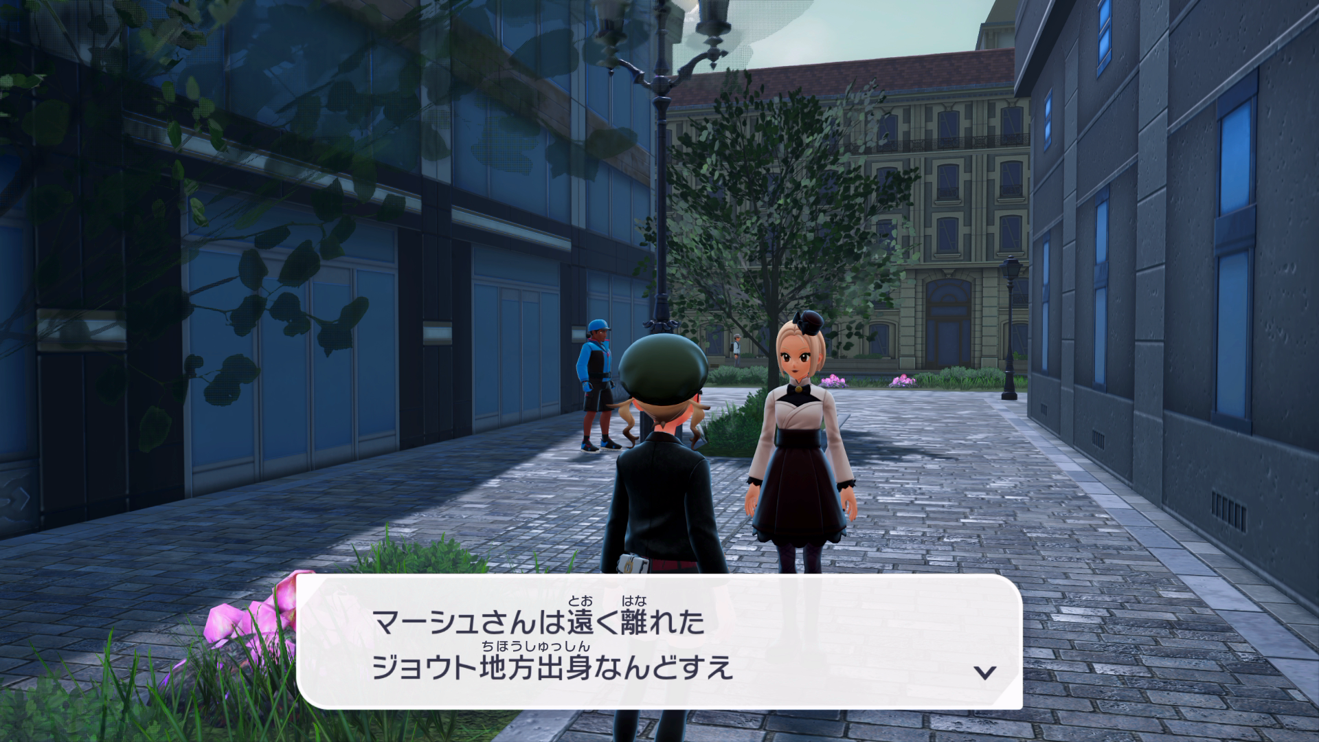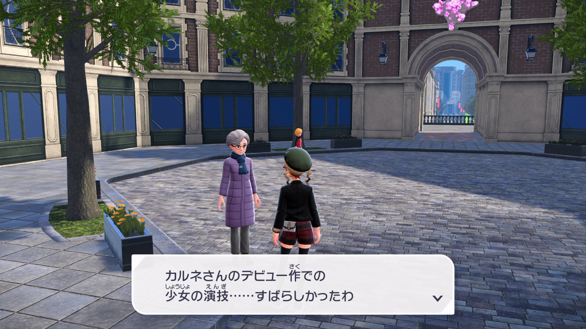 『XY』本編では、公共交通機関としてゴーゴートを利用する「ゴーゴーシャトル」が存在しましたが、『ZA』ではもう存在しないようです。ちなみに、隣の女性からは、「ゴーゴートは5000年前から人の仕事を手伝ってきたそう」と話しており、これは『スカーレット』のポケモン図鑑説明にそのような記述があります。