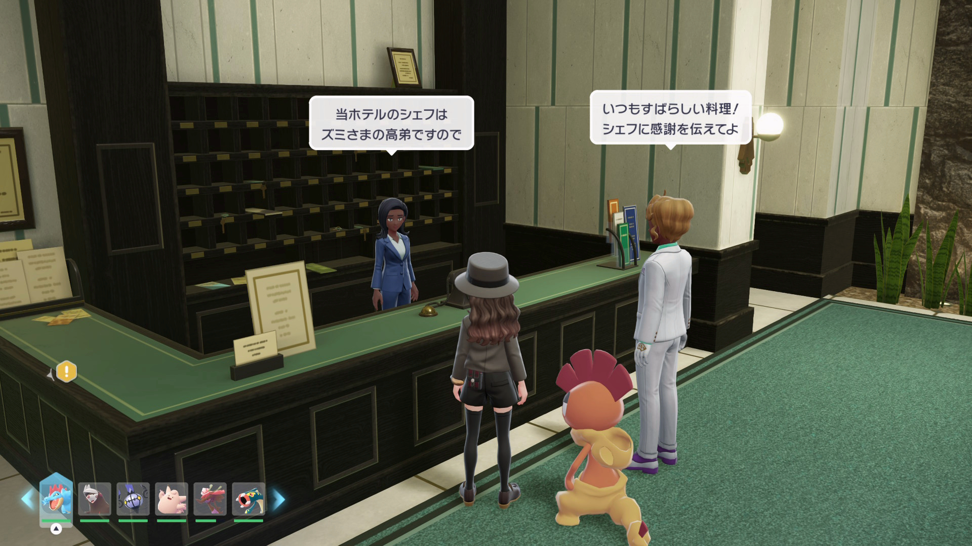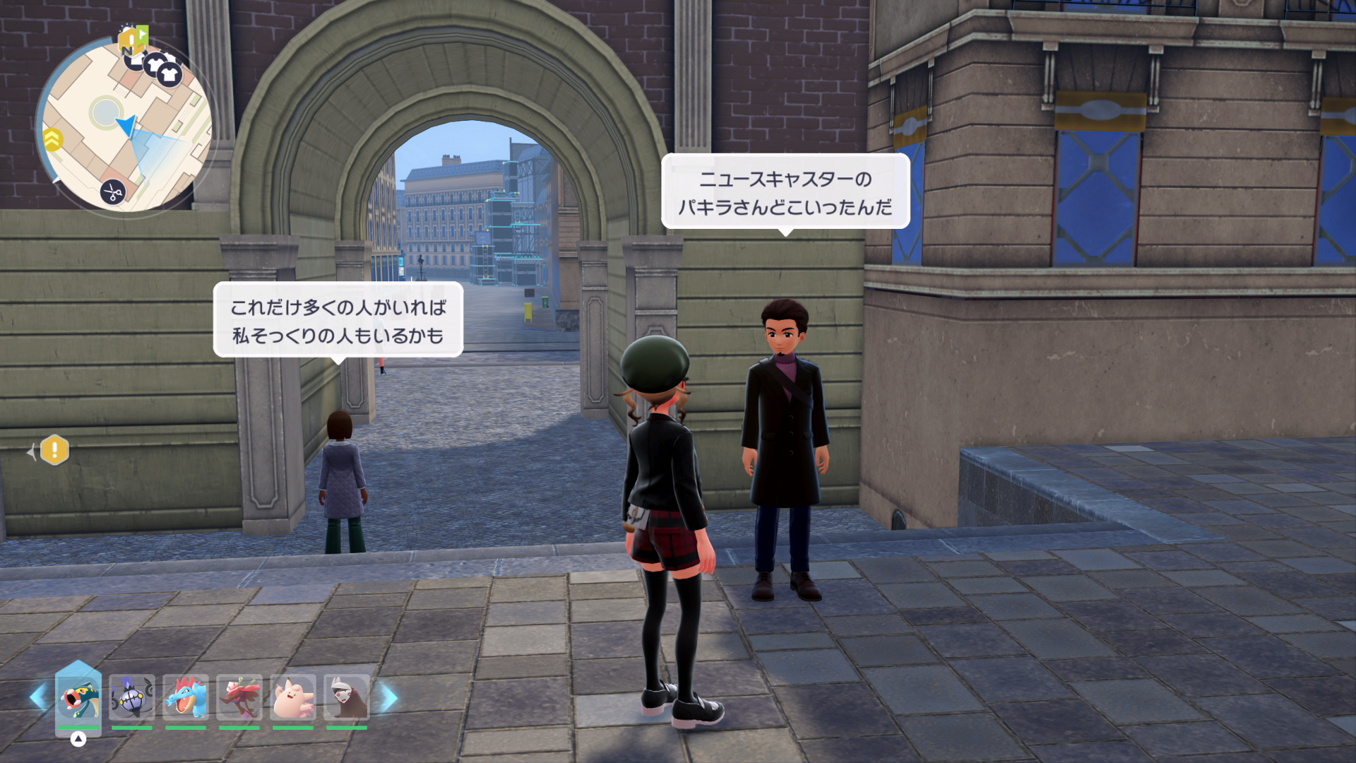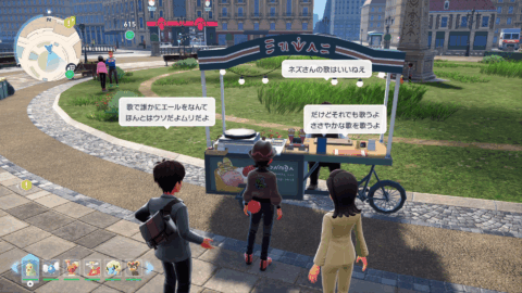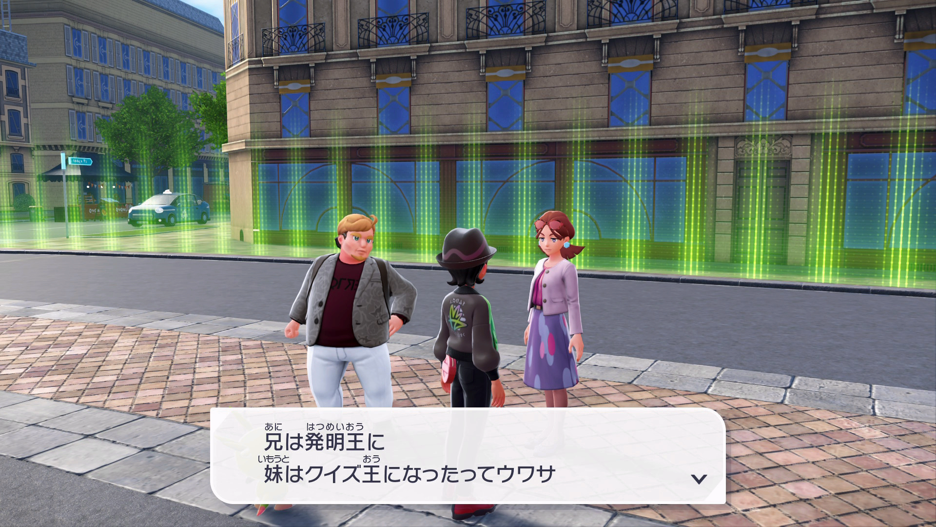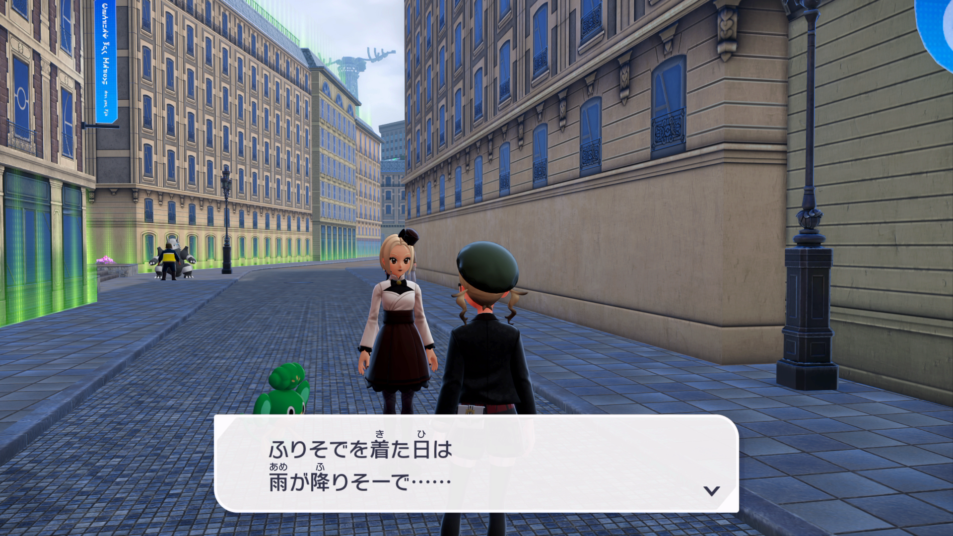 『XY』本編では、公共交通機関としてゴーゴートを利用する「ゴーゴーシャトル」が存在しましたが、『ZA』ではもう存在しないようです。ちなみに、隣の女性からは、「ゴーゴートは5000年前から人の仕事を手伝ってきたそう」と話しており、これは『スカーレット』のポケモン図鑑説明にそのような記述があります。