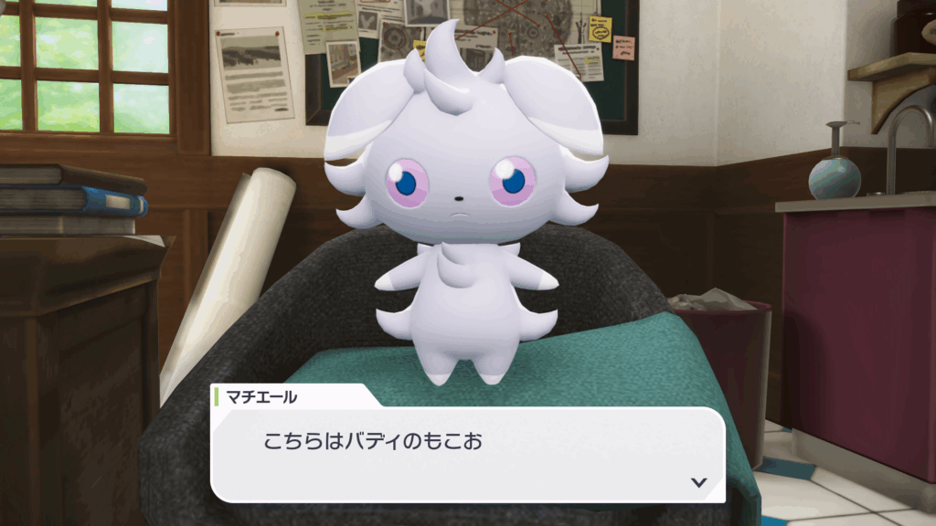 『ポケモンXY』でのマチエールは、「もこお」という名前のニャスパーと共に暮らしていました。