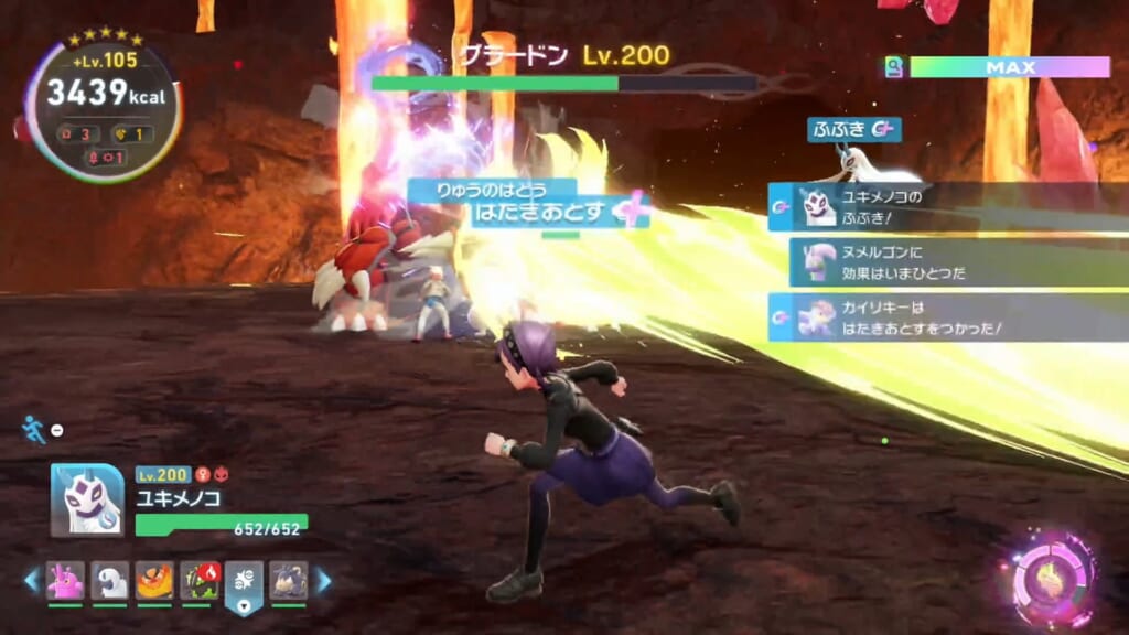 特殊行動は主人公やポケモンを引っ張ったり離したりする竜巻を展開し、隕石を落としてきます。