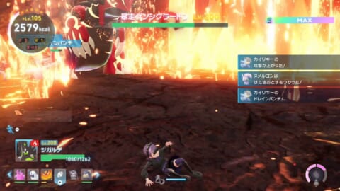 少しだけある安全地帯を除き、地面のほぼ全てに溶岩が出現して噴火するため、ダッシュやローリングで安全な位置へと移動しましょう。この技は3回連続で発動します。