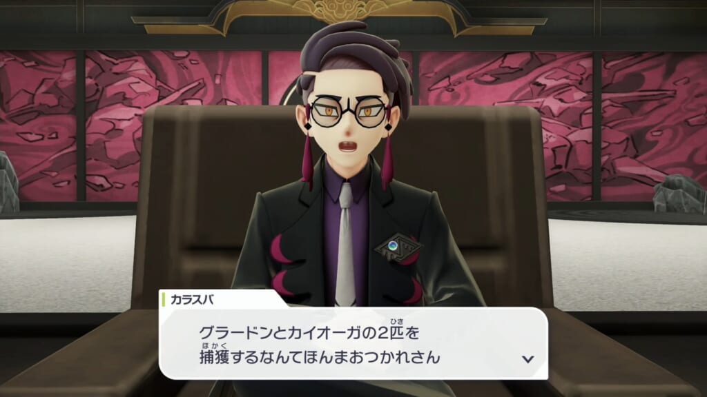 グラードン・カイオーガの2体を倒した後、自動的にサビ組へ移動し会話言っベントが進行します。