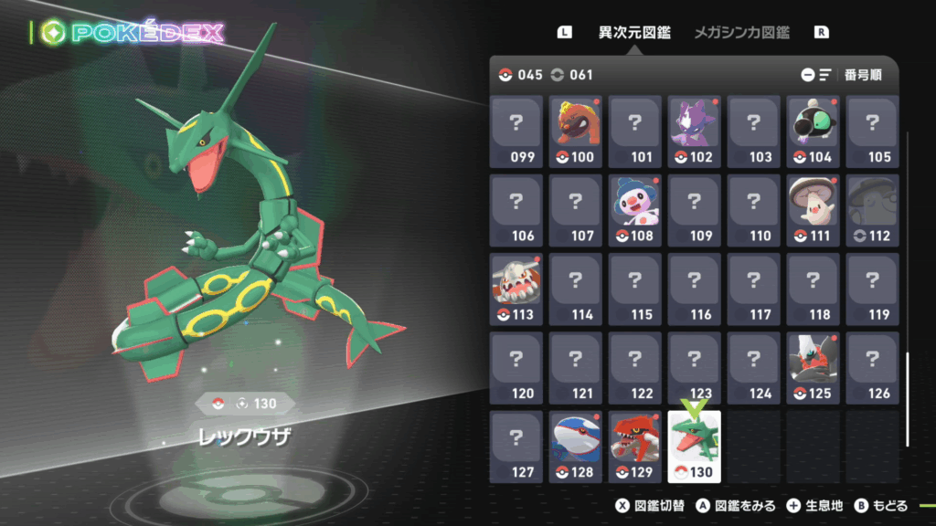 DLCで追加されたフィールドに出現するポケモンたちは異次元ミアレでのみ捕獲できるため、積極的にひずみから異次元ミアレに潜って図鑑を埋めていきましょう。