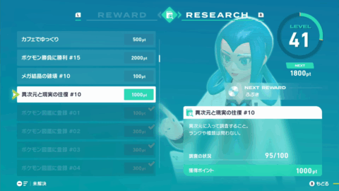 DLCで新たなモミジリサーチが追加されたため、このリサーチを達成せずとも、新たに追加された「異次元と現実の往復」などをこなしていくことで、野生ポケモンの色違い率が上がる