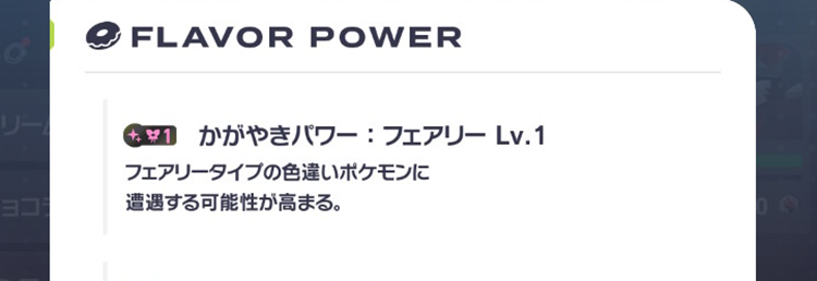 加えて、遭遇するポケモンの数を増やすことができる「そうぐうパワー」の発動も同時に狙える、フレッシュフレーバーも高い「いじげんハバンのみ」を素材に使うのがおすすめです。