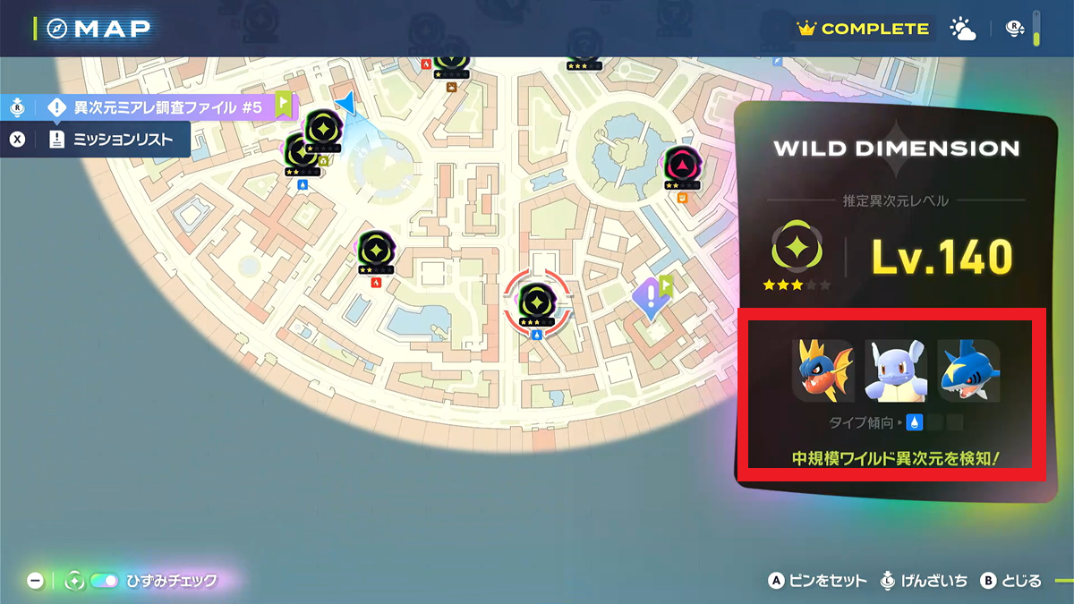 ミッションは入る異次元ミアレによって異なり、野生ポケモンが出現する「WILD DIMENSION(ワイルド ディメンション)」の場合は「野生ポケモンを捕まえる」「宙に浮かぶボールを破壊する」などのミッションがランダムに発生します。
