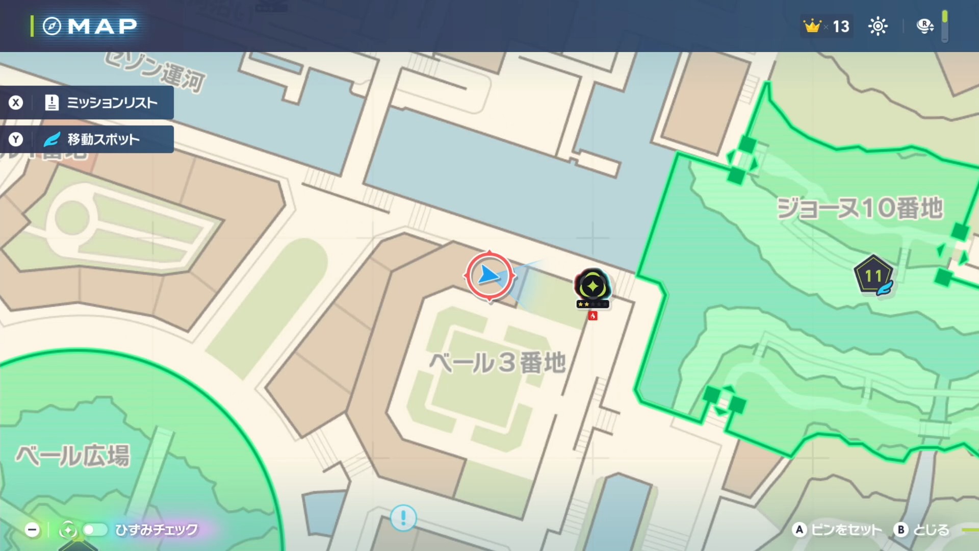 ミアレ駅前にあるひずみに移動すると会話イベントが進行します。