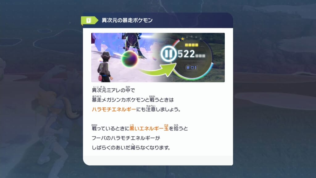 これを回収すると画面左上にあるフーパのハラモチエネルギーがしばらくの間減らなくなり、異次元ミアレへの滞在時間を延長できます。