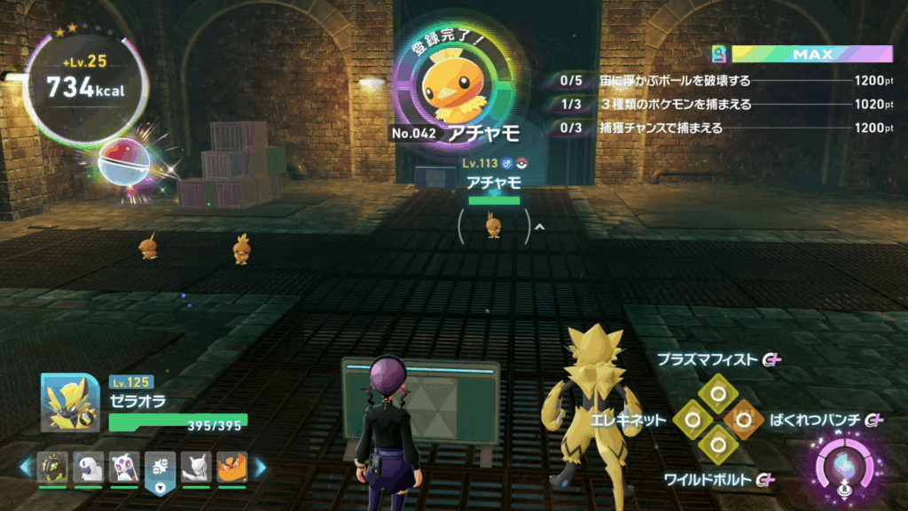 ある程度試行回数を重ねたり、ハラモチエネルギーが減ってきたら周囲を探索して出現している色違いポケモンを捕獲しましょう。