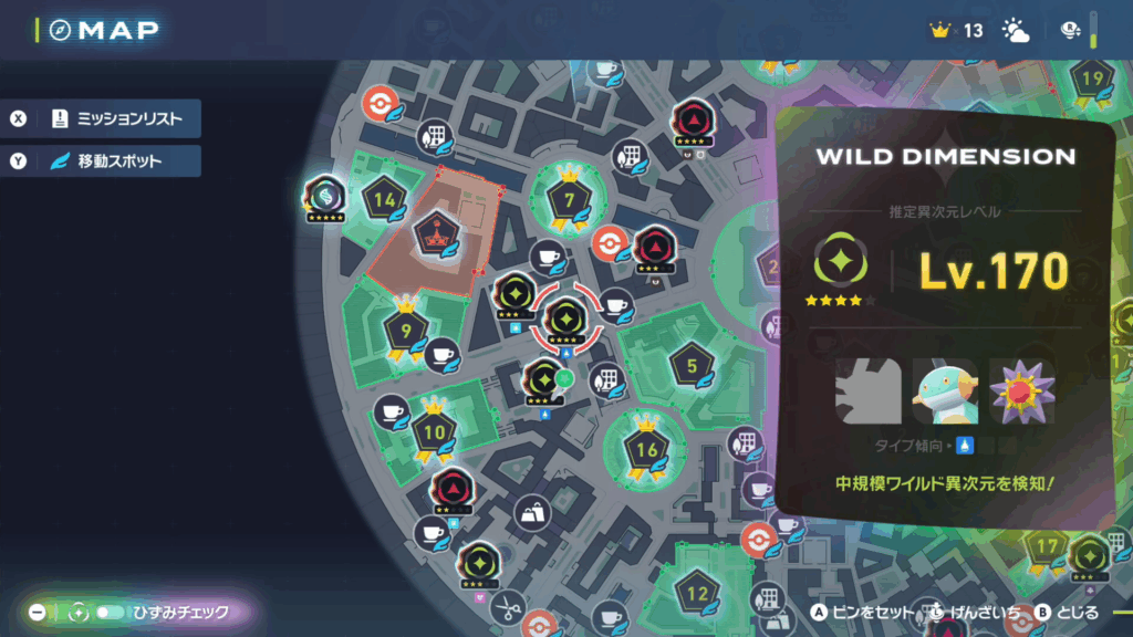 ヌマクローは★4+出現ポケモンのタイプの傾向がみずもしくはじめんタイプの異次元ミアレに出現することがあります。