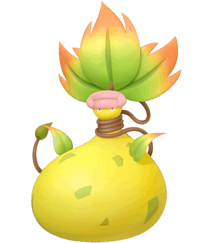メガシンカのエネルギーで体内の溶解液が大量に生成された結果、体重が8倍ほど、高さが3倍ほどに成長し、ツルで自らの喉元を縛らずにはいられなくなっています。