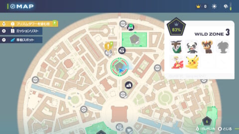 ピカチュウは、ワイルドゾーンの3番エリアで出現します。