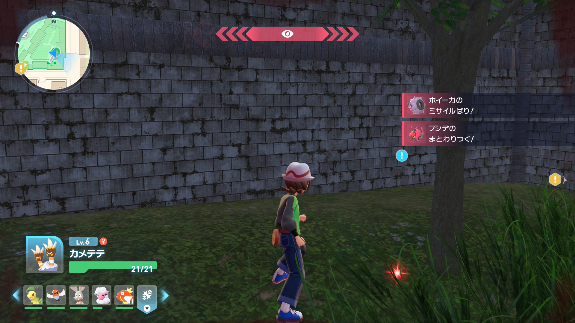 冒険のパートナーとしてワニノコを選んだ場合は、あらためて捕まえなくてもクリアできますが、チコリータやポカブを選んだ方は、ワイルドエリア2番ゾーンに生息している カメテテ を捕獲するのがおすすめです。