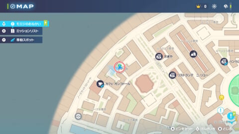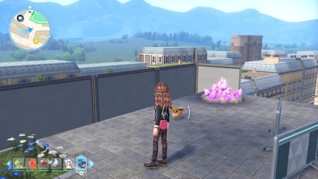 イーブイは、ローズ8番地とローズ9番地の間あたりにある「カフェ・カンコドール」付近のビルの屋上に生息しています。
