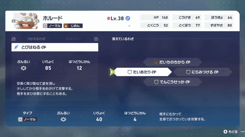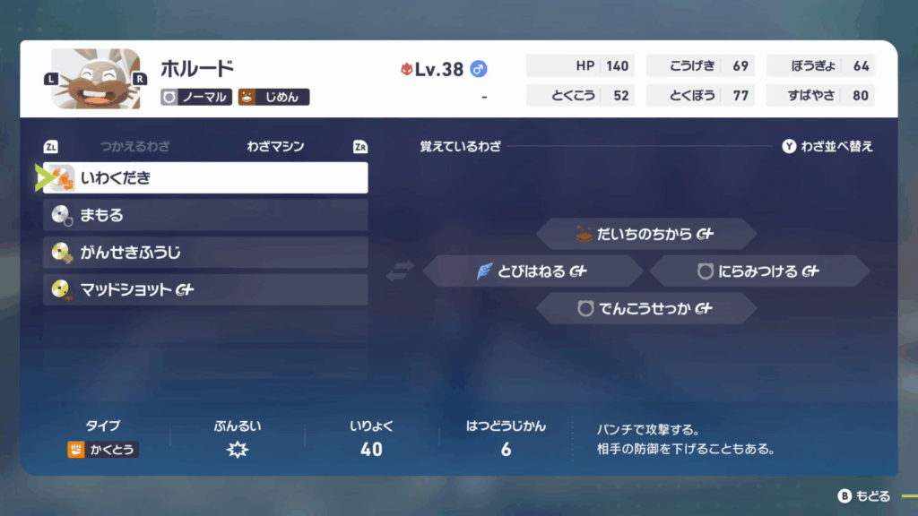 ZRボタンで表示を切り替えることにより、所持しているわざマシンから新たな技を覚えさせることも可能です。