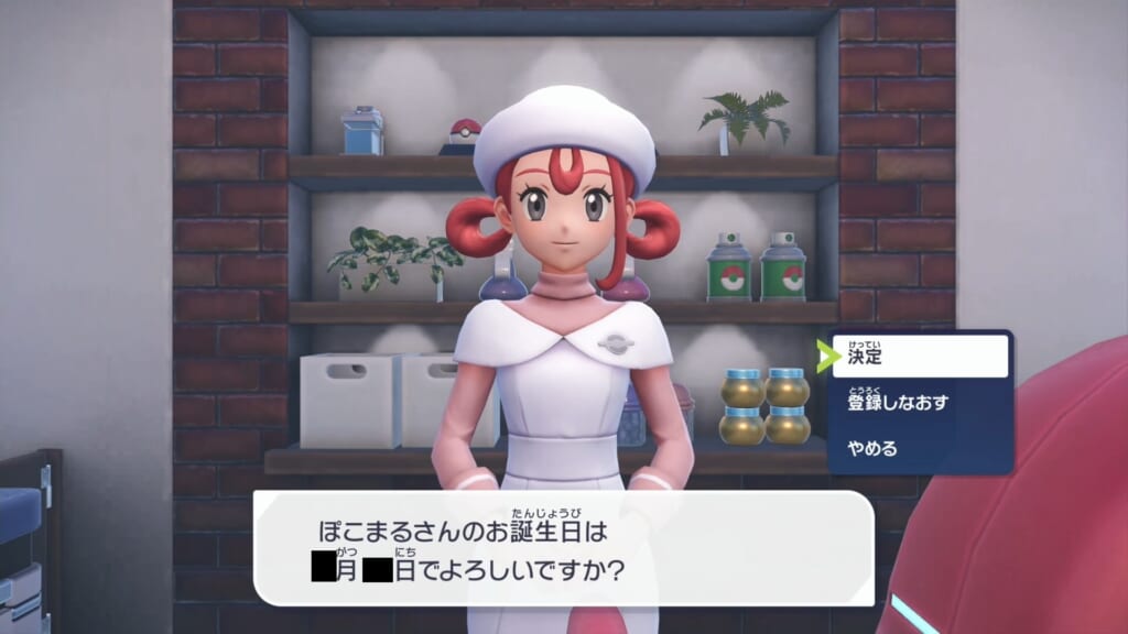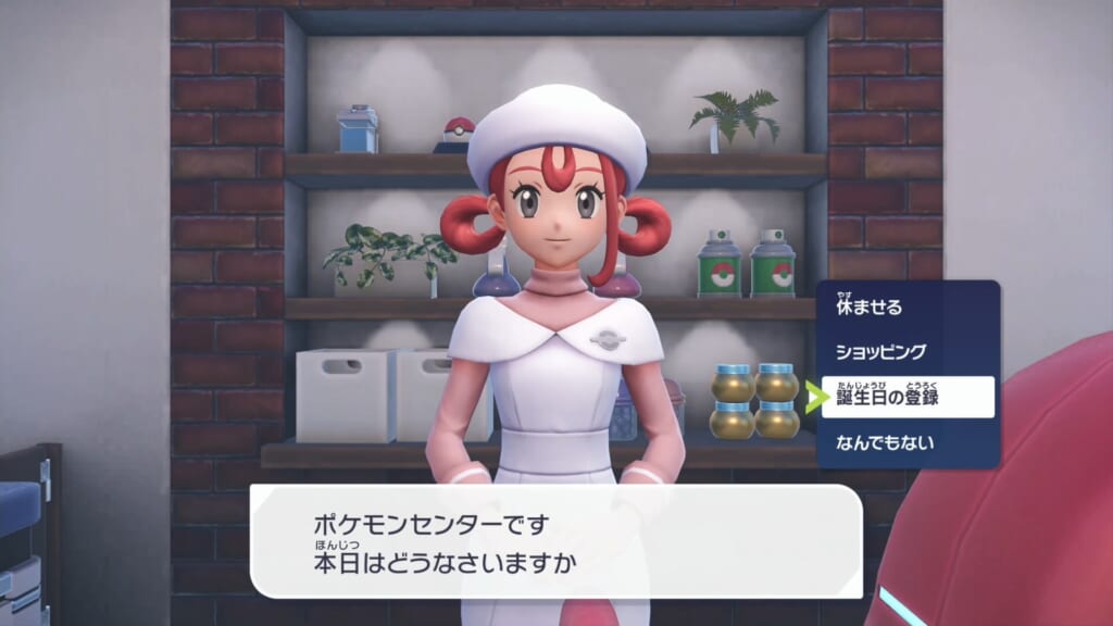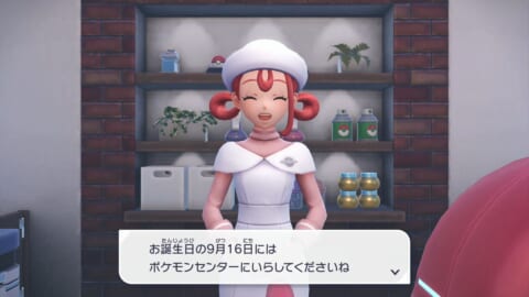 ゲーム内で設定した誕生日を迎えると、ポケモンセンターに行くと ポケモンセンターのお姉さんがプレイヤーを祝福してくれます。