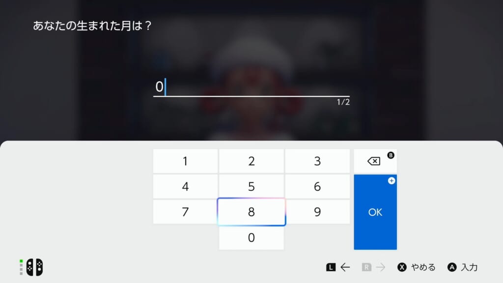 画面に表示される指示に従い、自身の誕生日を月と日で設定します。